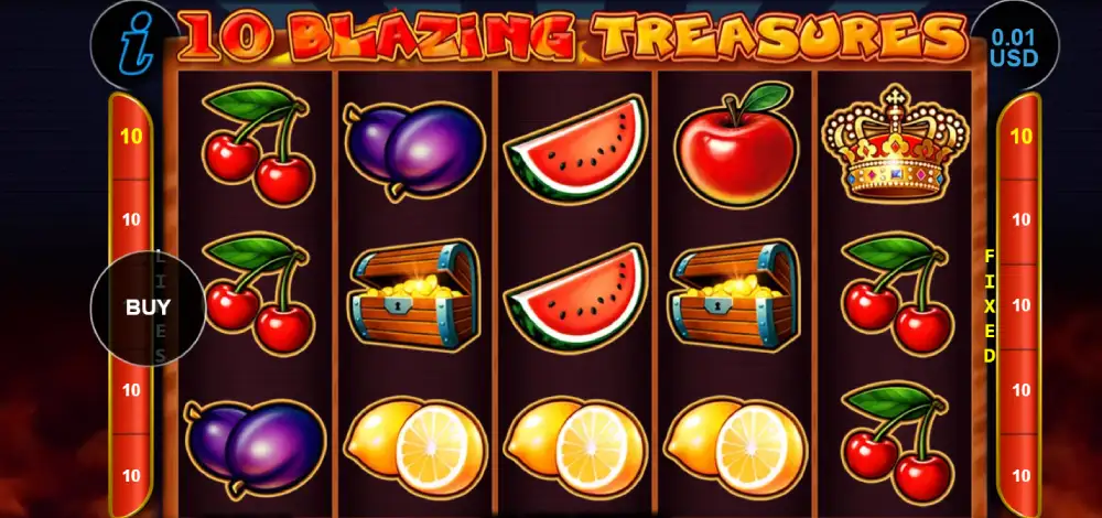 At its core, 10 Blazing Treasures runs on a simple 5×3 layout with 10 fixed paylines, making it incredibly easy to pick up and grind. The base game revolves around consistent small hits, supported by a medium volatility profile that keeps bankroll swings manageable. This makes it particularly appealing for crypto players who prefer longer sessions and steady wagering rather than hyper-volatile spikes.